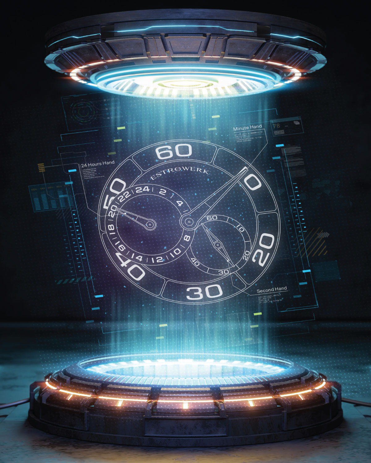 Time is displayed via a regulator style dial layout where hour, minute, seconds each has their dedicated counters with sizes that directly relate to their importance, to provide a sense of hierarchy. Rich in details and textures, and incorporating a combination of luminescent and fluorescent paint, making sure time can be read in any lighting condition, and provide maximum theatrical effects.